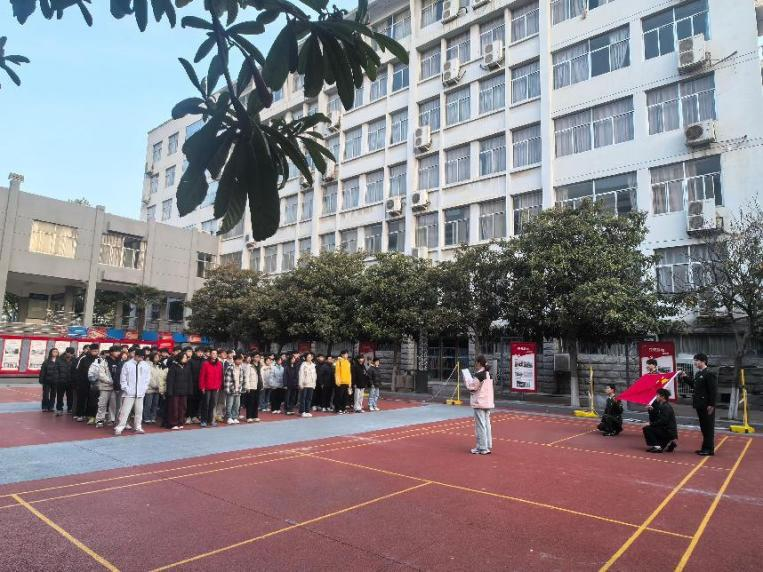 清晨伴随着嘹亮的口令声,退役军人组成的国旗护卫队迈着铿锵有力的步伐护送国旗入场。同学们在雄壮的国歌声中,面向国旗行注目礼,齐声高唱国歌。仪式后,退役大学生林怡汝结合自身参军经历,回顾了部队生涯守卫边疆、刻苦训练的峥嵘岁月,并勉励同学们既要仰望星空心怀家国,也要脚踏实地刻苦学习,用代码书写强国之志,以科技报国践行使命。学生代表梁佳强和李欣彤,号召同学们以科技创新服务国家战略,让青春在科技报国的征程中绽放光彩。