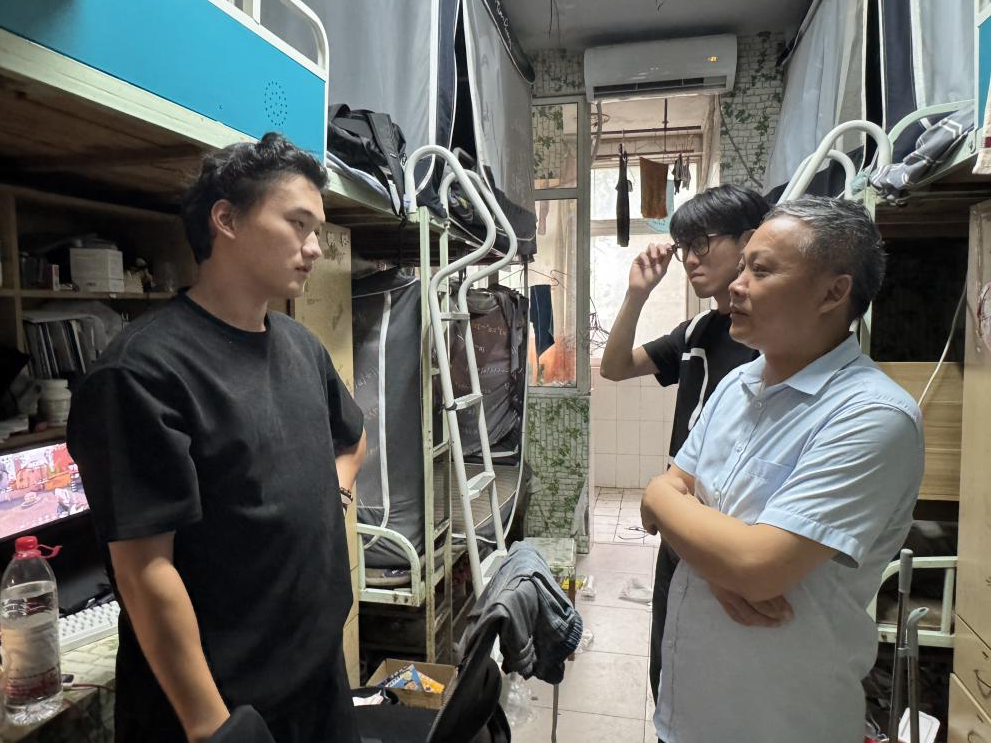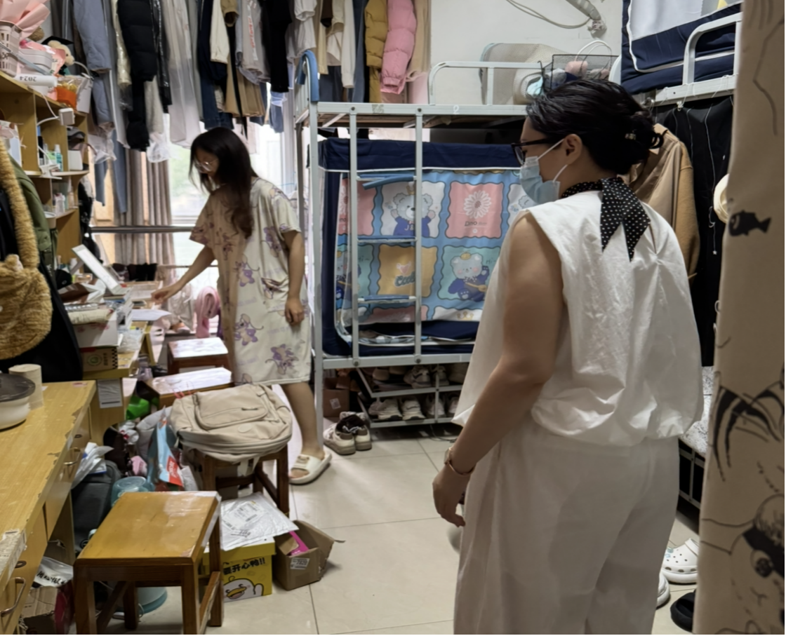 在学生自律委办公室,老师与学生干部深入交流宿舍管理与服务工作,号召学生干部当好榜样,增强安全意识,营造和谐有序、温暖的生活环境,为同学们的健康成长和发展保驾护航。