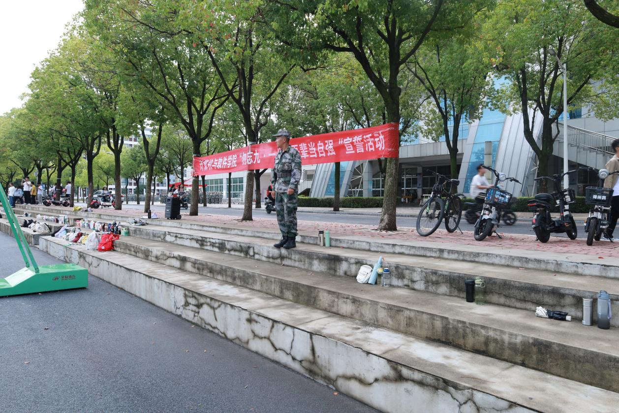 学院退役军人协会代表讲解“九一八事变”的前因后果,以及中华民族伟大的抗战史,用朴实无华的语言讲述革命先烈英勇抗敌、视死如归的英雄事迹,用最真挚的情感深刻缅怀“九一八”事变中牺牲的民族英雄。活动中,军训教官和新生们面对国旗庄严宣誓,铭记历史,勿忘国耻,奋发图强,振我中华。当天10时,刺耳的防空警报在校园上空响起,参加活动的同学们在警报声中默哀,悼念在战争中牺牲的革命先烈和死难同胞。